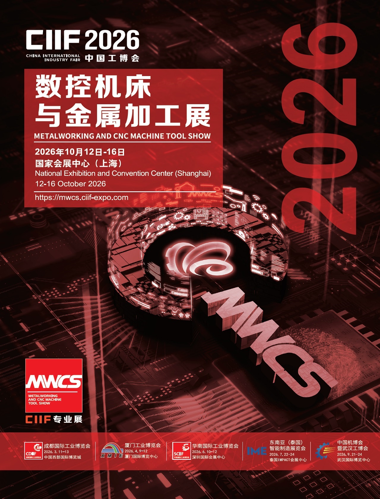 数控机床与金属加工展(MWCS)是中国国际工业博览会的核心专业展之一,国内领先的国际性金属加工技术展,重点关注金属切削加工技术、钣金、冲压、成形技术、检验测量设备、金属3D打印、及先进功能部件和材料等领域, 致力为厂商提供优质参展体验,为专业观众提供“信息咨询、技术交流、设备采购一站式”综合服务。